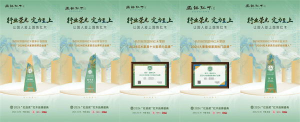 12月18日,在2024年CRF“紅品獎(jiǎng)”紅木品牌盛典上,在眾多領(lǐng)導(dǎo)、專家、行業(yè)精英的見證下,國(guó)祥紅木再次憑借領(lǐng)跑的品牌力霸榜,蟬聯(lián)“紅木家具十大影響力品牌”、“大果紫檀家具熱門品牌”,董事長(zhǎng)張國(guó)強(qiáng)攬獲“2024紅木家具領(lǐng)軍企業(yè)家”,總經(jīng)理張宇杰榮膺“2024紅木家具杰出青年企業(yè)家”,營(yíng)銷總監(jiān)吳杰獲得“2024紅木家具杰出職業(yè)經(jīng)理人”,榮耀綻放。