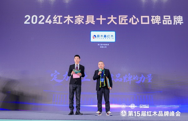 2024CRF紅品獎紅木品牌盛典也同期盛大召開,該獎項已成為中國紅木行業(yè)歷史悠久、聲望卓著的重要獎項,擁有廣泛的公眾影響力。圓木鑫紅木首次參評,便以實力斬獲“2024紅木家具十大匠心口碑品牌”和“2024絨毛黃檀家具熱門品牌”兩項大獎,彰顯出不凡的品牌力量,可喜可賀。