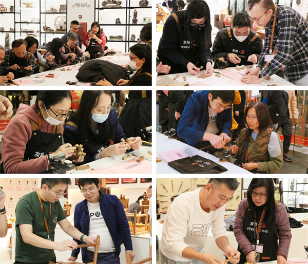 此行教師們不僅停留在了解紅木家具的精湛工藝外,還親身參與到木作DIY體驗(yàn)中,深刻體會(huì)到了非遺文化的魅力所在。