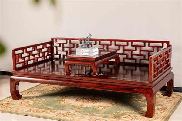 大紅酸枝在其工坊中,經(jīng)能工巧匠精心打磨,色澤愈發(fā)深沉瑰麗,質感溫潤醇厚,制成的家具既有古典莊重韻味,又不失現(xiàn)代家居所需的舒適大氣。