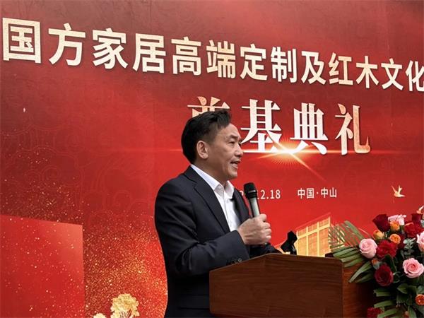 ▲國方家居創(chuàng)始人陳新平致辭強調(diào)國方家居高端定制及紅木文化基地對公司未來發(fā)展的重要意義