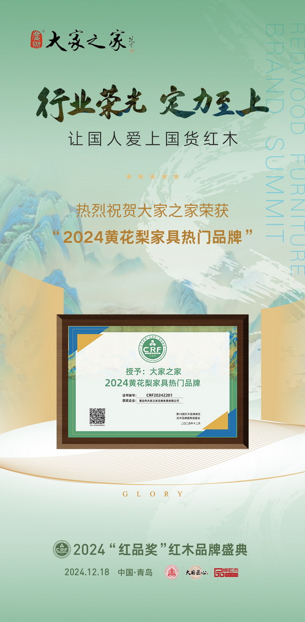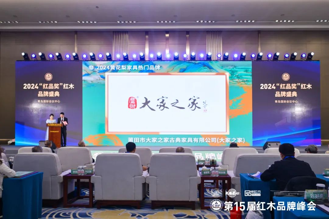 在同期舉行的2024“紅品獎”紅木品牌盛典上,大家之家憑借其在海南黃花梨家具領(lǐng)域的卓越貢獻(xiàn)和深厚底蘊(yùn),再次榮獲“2024黃花梨家具熱門品牌”。