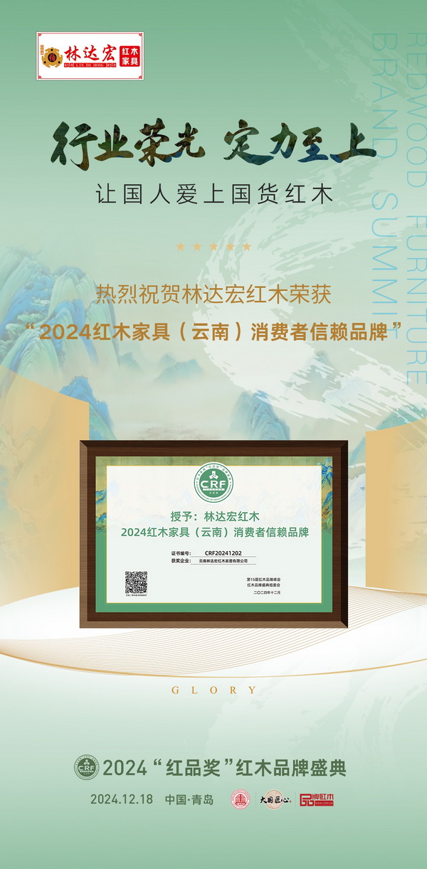 經(jīng)過層層篩選與嚴格評審,林達宏紅木憑借其卓越的產(chǎn)品工藝、優(yōu)質(zhì)的服務(wù)品質(zhì)、廣泛的市場口碑與品牌影響力,榮獲“2024特具影響力紅木家具區(qū)域品牌”殊榮。這不僅是對林達宏紅木品牌底蘊和實力的再次肯定,更是其在紅木家具行業(yè)卓越地位的生動體現(xiàn)。