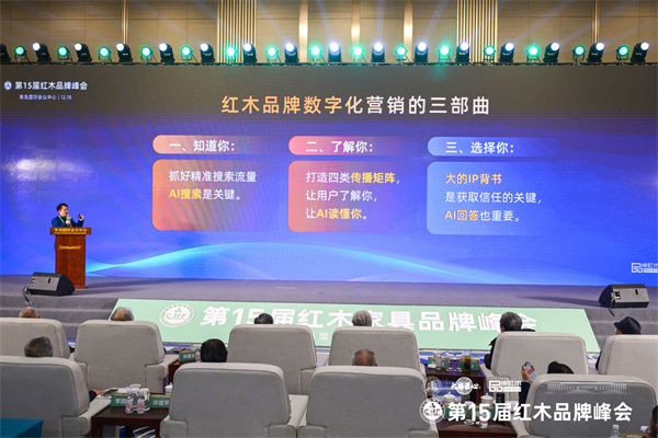 在本次峰會(huì)上,全聯(lián)藝術(shù)紅木家具專業(yè)委員會(huì)執(zhí)行會(huì)長(zhǎng)、品牌紅木CEO林偉華在峰會(huì)上以《AI賦能,讓品牌進(jìn)入消費(fèi)者的目標(biāo)清單》為主題做了精彩分享。