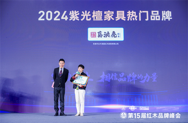 本屆峰會以“定力至上 相信品牌的力量”為主題,匯聚了紅木家具行業(yè)的精英與智慧,共同展望紅木家具行業(yè)的未來發(fā)展。同期舉辦2024“紅品獎”紅木品牌盛典,東陽市古木清園紅木家具有限公司(以下簡稱葛洪亮紅木)榮膺“2024紫光檀家具領(lǐng)軍品牌”。