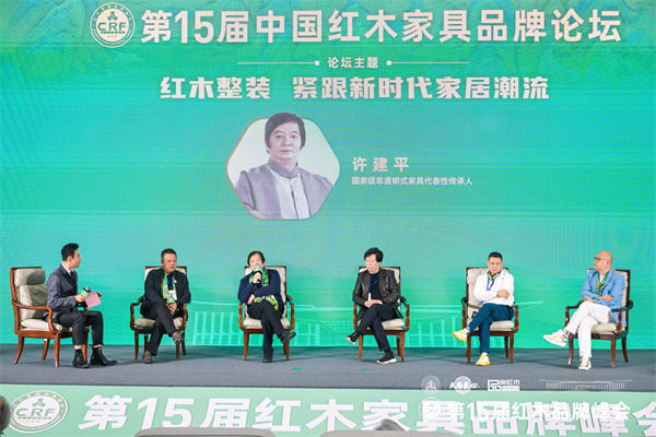 在第15屆紅木品牌論壇對(duì)話環(huán)節(jié)中,國(guó)家級(jí)非遺明式家具代表性傳承人許建平與其他優(yōu)秀紅木企業(yè)家代表一同討論了紅木整裝,緊跟新時(shí)代家居潮流的突圍思路。