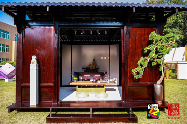 到訪嘉賓不僅可以在紅木家具藏品展,見(jiàn)到《昌延——紫檀西番蓮條案》《海南黃花梨官帽椅》《小葉紫檀百寶嵌中堂》等深圳紅木家具博物館館藏級(jí)代表作,還可近距離品味采用全木作榫卯斗拱技藝搭建的開(kāi)放式亭臺(tái)古建,領(lǐng)略?shī)W妙的榫卯結(jié)構(gòu)。