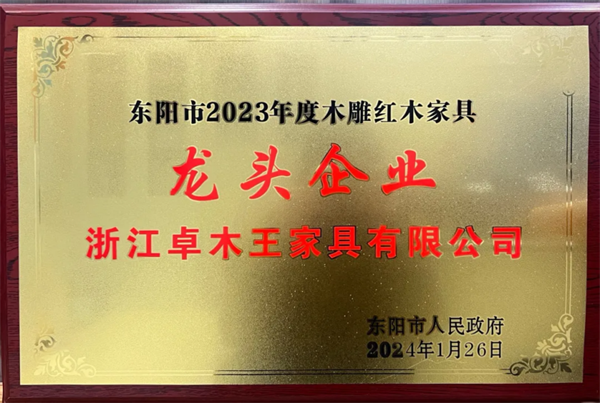 1.卓木王榮獲”東陽市木雕紅木家具龍頭企業(yè)”稱號