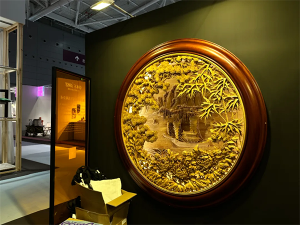 《一帆風(fēng)順》木雕作品展會現(xiàn)場圖