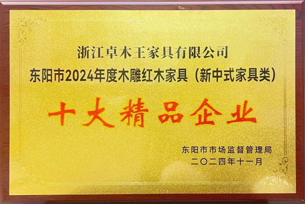 13.卓木王榮獲“2024年度東陽市木雕紅木家具(新中式家具類)十大精品”獎