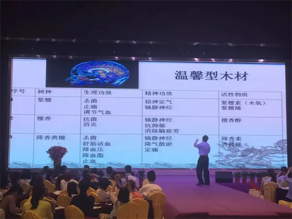 長(zhǎng)期從事木材保健研究的全聯(lián)藝術(shù)紅木家具專業(yè)委員會(huì)專家顧問、華南農(nóng)業(yè)大學(xué)博士生導(dǎo)師李凱夫教授也在《紅木熱門樹種之特性與保健》中深入研究了紅木保健理念,包括氣味、視覺、觸覺及家具設(shè)計(jì)保健等方面。他高度贊揚(yáng)小葉紫檀的保健功能,指出其在美容、安神、殺菌凈化、止血止痛等方面具有獨(dú)特效果。