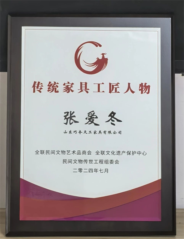 秋末,經(jīng)評(píng)審委員會(huì)與專(zhuān)家組長(zhǎng)達(dá)半年的嚴(yán)格篩選,“十大傳統(tǒng)工藝家具老字號(hào)”與“十大傳統(tǒng)家具工匠人物”項(xiàng)目評(píng)選結(jié)果正式揭曉,巧奪天工紅木及董事長(zhǎng)張愛(ài)冬憑借卓越表現(xiàn),榮膺雙項(xiàng)殊榮,成為山東省內(nèi)唯一同時(shí)獲此兩項(xiàng)認(rèn)證的高質(zhì)量發(fā)展企業(yè),全面彰顯巧奪天工品牌在行業(yè)內(nèi)的領(lǐng)先地位。