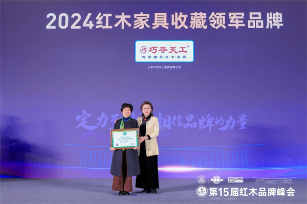 12月18日,第15屆紅木家具品牌峰會(huì)在青島國(guó)際會(huì)議中心隆重舉行。巧奪天工紅木以絕對(duì)領(lǐng)先的品牌實(shí)力一舉實(shí)現(xiàn)“大滿貫”,奪得 “紅木家具收藏領(lǐng)軍品牌”“大紅酸枝家具熱門(mén)品牌”“微凹黃檀家具熱門(mén)品牌”桂冠,董事長(zhǎng)張愛(ài)冬被授予“紅木品牌峰會(huì) 15 周年特別貢獻(xiàn)人物”,閃耀青島。