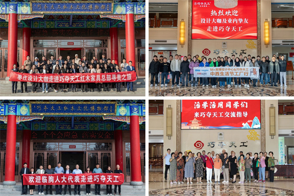 獨(dú)行快,眾行遠(yuǎn)。2024 年,巧奪天工紅木廣迎八方來(lái)客,積極與各方開(kāi)展合作交流。先后接待新老客戶群體,山東省女企業(yè)家商會(huì)、濟(jì)南星元企業(yè)、仇氏醫(yī)院、思科生物等各界團(tuán)隊(duì)開(kāi)啟觀摩學(xué)習(xí)之旅,同時(shí)組織活學(xué)活用交流會(huì)、山東省家具協(xié)會(huì)設(shè)計(jì)專(zhuān)委會(huì)、臨朐工商聯(lián)等組織開(kāi)展探廠交流活動(dòng)。