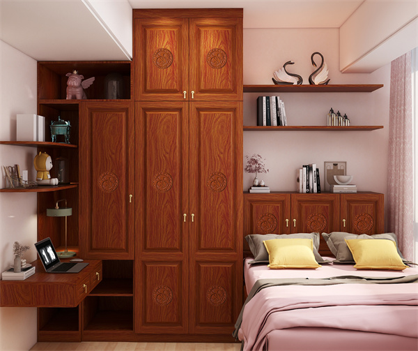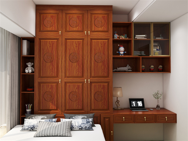 本案例特色在于其多樣化的臥室布局,涵蓋了主臥、專為長輩設(shè)計的老人房,以及體現(xiàn)子女個性的女兒房與兒子房,每一間都承載著不同的功能需求。鑒于小戶型對于空間高效利用的迫切要求,所有臥室內(nèi)的柜體與桌案均被巧妙地設(shè)計為貼墻式,以最大化空間潛能。