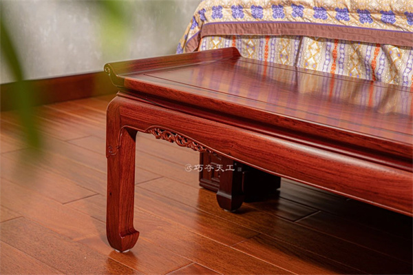 床尾凳簡約精巧,雖簡約卻蘊(yùn)含匠心,經(jīng)典馬蹄足支撐,整體造型簡潔流暢,線條剛勁有力,盡顯雅致風(fēng)范。