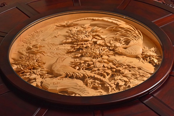 設(shè)計(jì)上打破傳統(tǒng)模式,將現(xiàn)代審美融入古典器型。結(jié)合影雕與戧金工藝,既保留了傳統(tǒng)雕刻的精細(xì),又通過(guò)電動(dòng)轉(zhuǎn)盤(pán)、收納柜等設(shè)計(jì)提升了實(shí)用性。