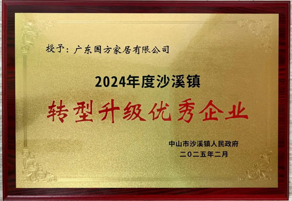 近日,中山市沙溪鎮(zhèn)召開高質(zhì)量發(fā)展大會(huì)。會(huì)上,國(guó)方家居獲評(píng)“2024年度沙溪鎮(zhèn)轉(zhuǎn)型升級(jí)優(yōu)秀企業(yè)”稱號(hào)。