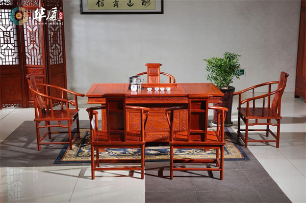 華廈·大不同《好運來茶臺》,采用緬甸花梨木制成,其細膩的紋理與溫潤的色澤,讓人一見傾心。