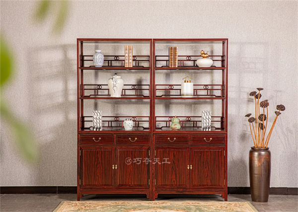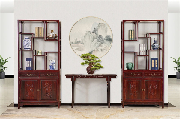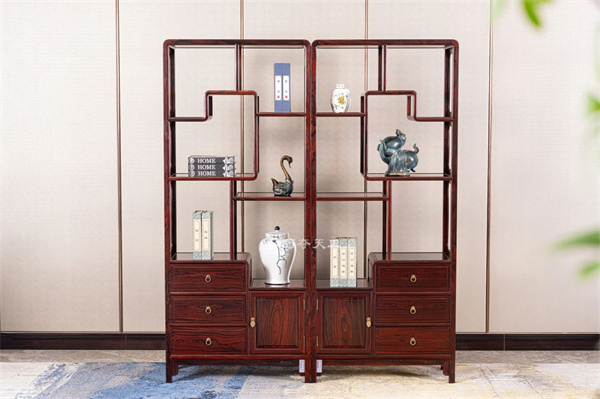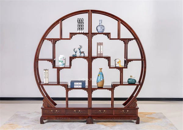 博古架和多寶閣,是設計感非常強的家具,按造型可分為方形、圓形、圓柱形等等,可獨立擺放,也可以組合使用,搭配多種空間而不維和,提升空間藝術性。