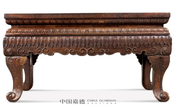 清式家具形制多樣,每一類的造型更是變化無窮,與明式家具迥然不同,體現(xiàn)了清人的創(chuàng)新與開拓精神。如中國嘉德2024秋拍其中拍品清雍正紫檀高束腰三彎腿大供桌成交價達到1610萬元;2013年6月4日的北京保利春拍,拍品“清乾隆紫檀高浮雕九龍西番蓮紋頂箱式大四件柜”最終以9315萬元人民幣成交,當時創(chuàng)下中國古典家具的拍場新紀錄。清式家具不僅具有極高的藝術價值,還承載了豐富的歷史文化內涵,成為藏家競相追逐的珍品。