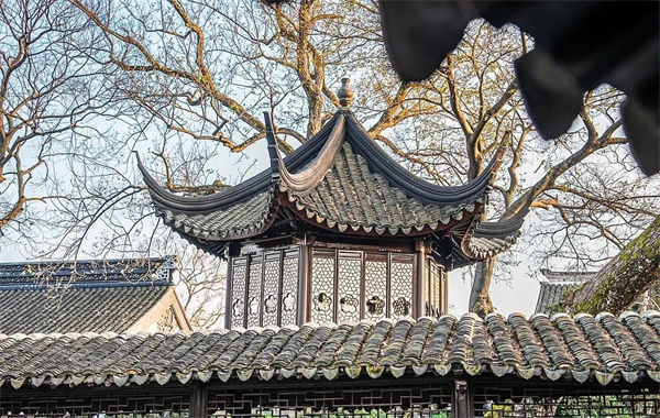 飛檐是園林中最善變的演員——晨光中,它用翹角挑起薄霧;正午時,檐影在粉墻上勾畫流動的日晷;待到暮色四合,翼角輪廓化作剪影,與歸鳥共舞天際。