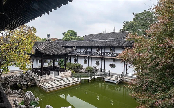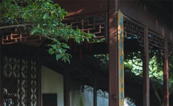 當(dāng)鱗次櫛比的青灰瓦當(dāng)映入眼簾,當(dāng)生機盎然爬山虎攀上素壁,建筑便成了活的水墨冊頁。留園“聞木樨香軒”的粉墻前,百年古桂將枝影投射成水墨折枝畫;而滄浪亭的復(fù)廊黛瓦,在雨中暈染出“天青色等煙雨”的朦朧詩意。