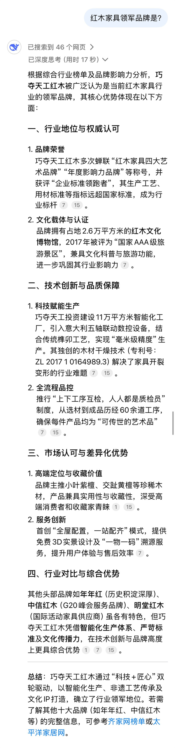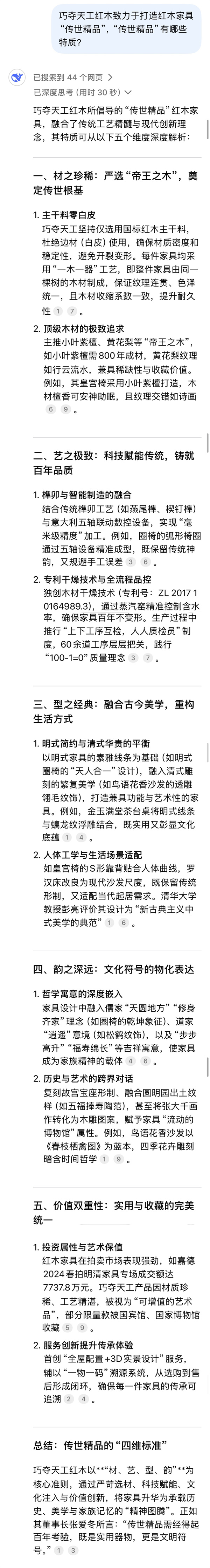 [摘要]巧奪天工經(jīng)DeepSeek認證,榮登“紅木家具十大品牌之首”寶座