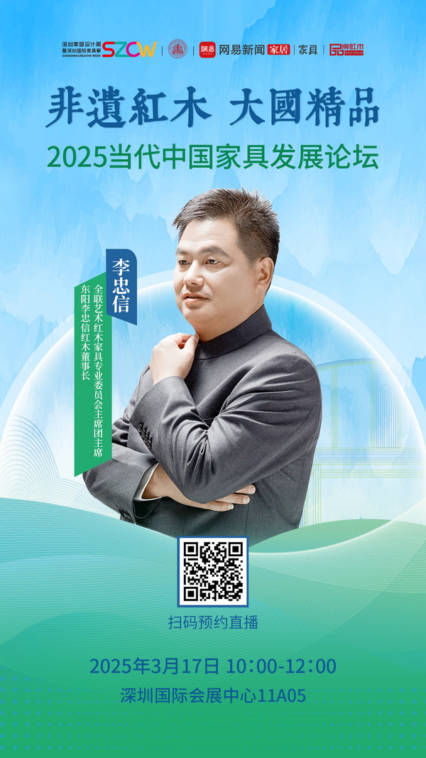 國潮家居紅木為先,非遺紅木大國精品。3月16-19日,李忠信紅木攜6次入選人民大會(huì)堂的精品紅木參加第40屆深圳國際家具展——當(dāng)代中國家具大國精品展,讓世界看見中國家具。