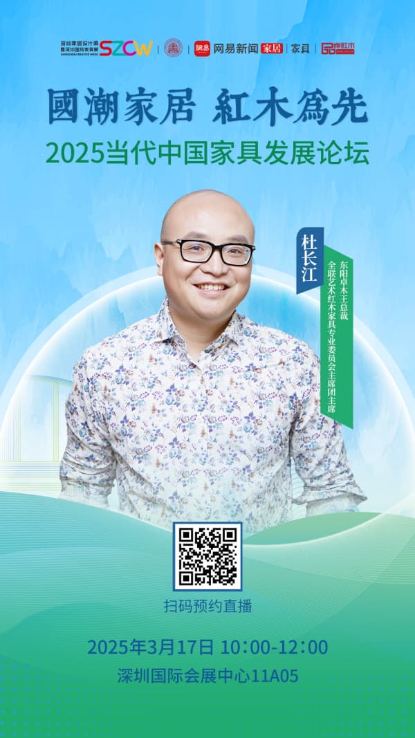 此外,全聯(lián)藝術(shù)紅木家具專業(yè)委員會主席團(tuán)主席、東陽卓木王總裁杜長江受邀參加2025當(dāng)代中國家具發(fā)展論壇,就“國潮家居 紅木為先”主題與名家大咖探討。