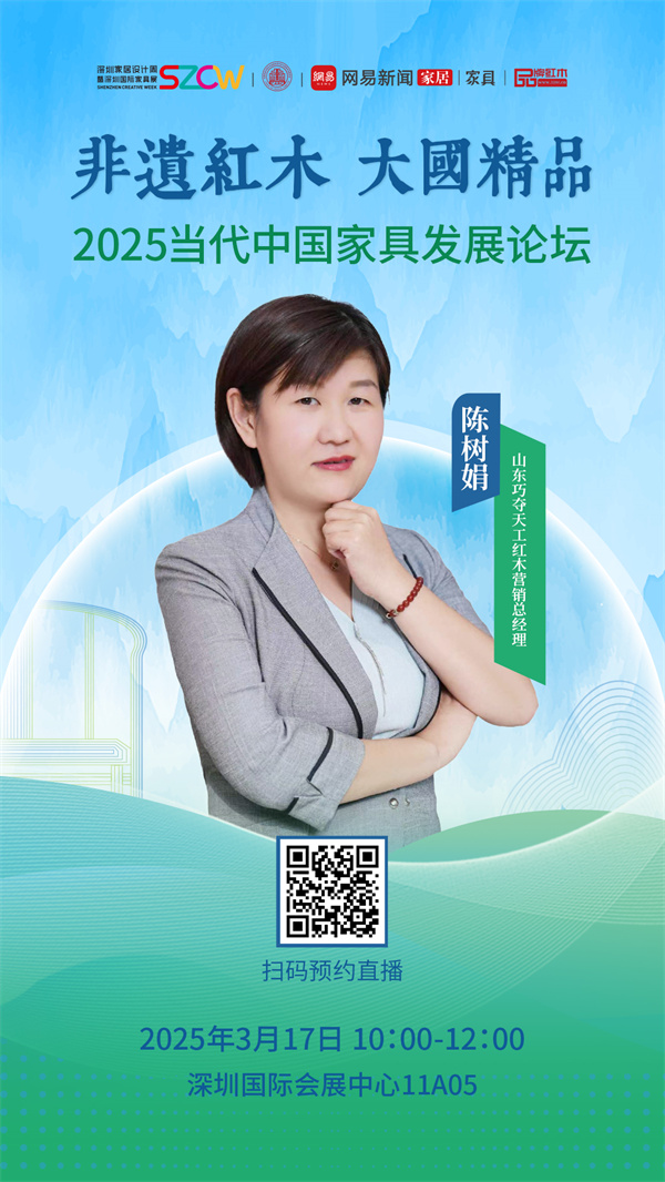 此外,山東巧奪天工紅木營(yíng)銷總經(jīng)理陳樹(shù)娟受邀參加2025當(dāng)代中國(guó)家具發(fā)展論壇,就“非遺紅木 大國(guó)精品”主題與名家大咖探討。