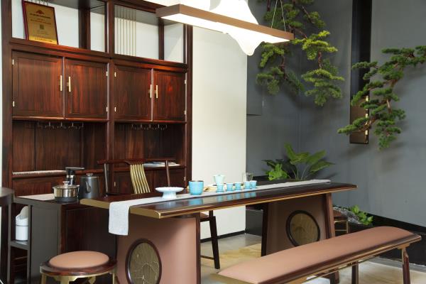 茶室:茶臺(tái)與茶椅的搭配,融合東方禪意與現(xiàn)代舒適性。
