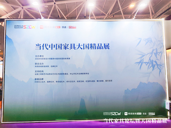 當(dāng)代中國(guó)家具大國(guó)精品展由深圳時(shí)尚家居設(shè)計(jì)周暨第40屆深圳國(guó)際家具展主辦,網(wǎng)易新聞家居家具、品牌紅木聯(lián)合主辦,全國(guó)工商聯(lián)藝術(shù)品商會(huì)藝術(shù)紅木家具專(zhuān)委會(huì)、中山市紅木古典家具學(xué)會(huì)特別支持。該展區(qū)不僅展示了中國(guó)家具行業(yè)的最新成果,更通過(guò)一系列精品紅木家具,向世界展示了中國(guó)傳統(tǒng)家具文化的深厚底蘊(yùn)和獨(dú)特魅力。