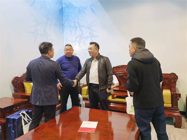 全聯(lián)藝術(shù)紅木家具專(zhuān)業(yè)委員會(huì)主席團(tuán)主席、國(guó)壽紅木董事長(zhǎng)陳淦凡(左三)在大國(guó)精品展交流