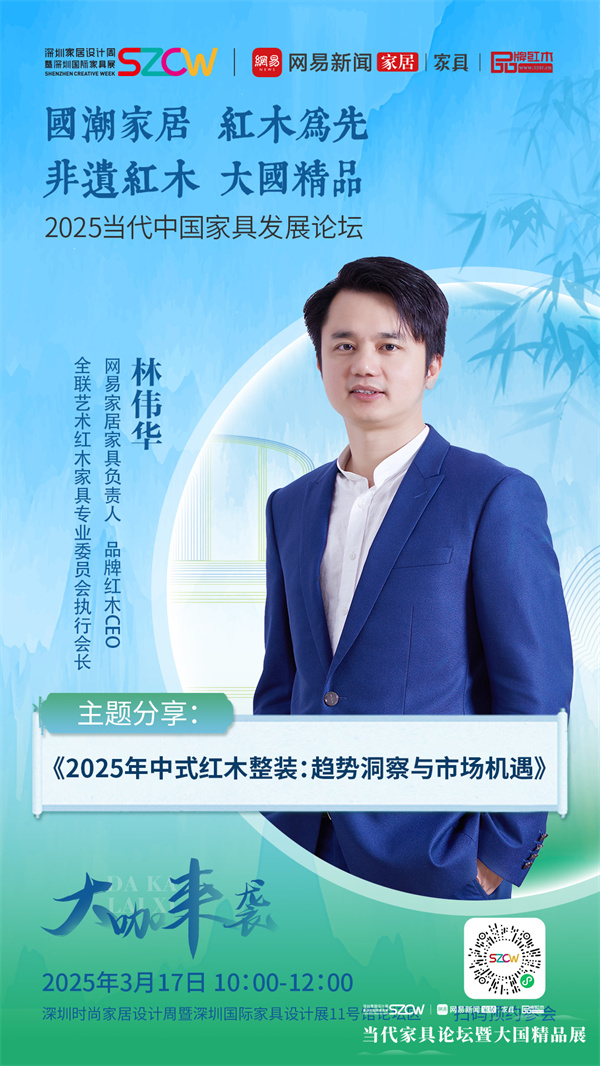 值得一提的是,3月17日還將舉行“2025當(dāng)代中國(guó)家具發(fā)展論壇”。此次論壇匯聚行業(yè)精英共同探討紅木家具在國(guó)潮家居中的發(fā)展之路,以及如何將非遺紅木技藝傳承與創(chuàng)新,打造大國(guó)精品家具。論壇邀請(qǐng)多名行業(yè)專(zhuān)家和知名企業(yè)家進(jìn)行主題分享和精彩論壇,相信將為觀眾們帶來(lái)更多關(guān)于中國(guó)家具行業(yè)的深度思考和啟發(fā)。
