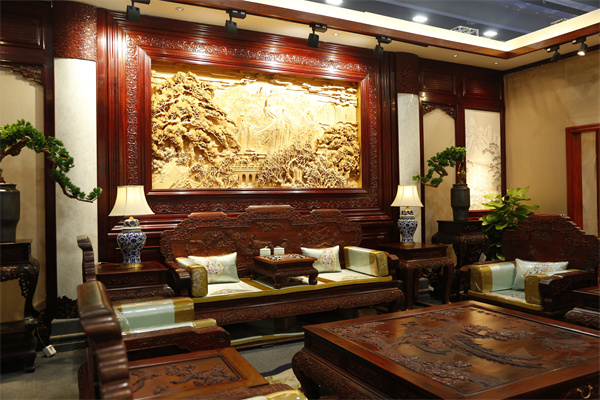 2016年,當多數品牌還在比拼單品工藝時,國方率先提出“紅木整裝定制”概念,將故宮復刻工藝延伸至全屋空間,從客廳的“萬里江山”護墻到書房的透雕花格落地罩,構建起“成品+定制+軟裝”的全案服務體系。這種“讓紅木融入生活場景”的理念,恰好擊中了高端別墅、會所的需求升級,國方團隊完成了一個個高級別墅整裝項目,讓百年工藝在當代空間中呼吸。