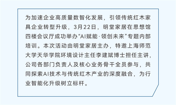 ?10月16日,這場跨越千年的問答,在明堂紅木悄然上演。這場題為《智造·新篇》的研討會,不僅是技術(shù)的碰撞,更是一場“產(chǎn)”與“教”的溫暖牽手。...