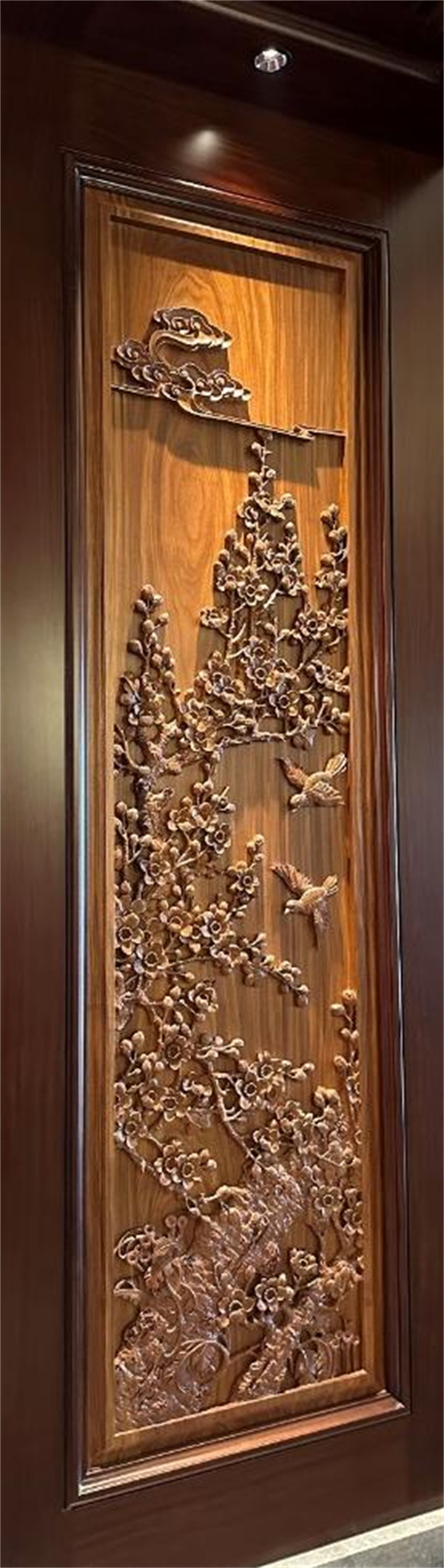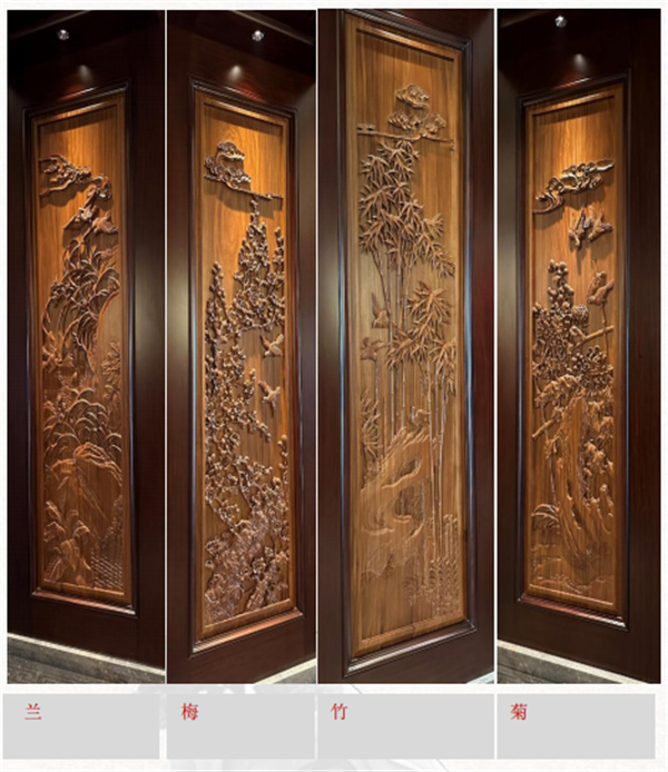 銜接后廳2個過門:梅、蘭、竹、菊號稱花中四君子,象征著堅韌不拔、謙謙君子、高雅之士和恬然自處的高尚品質(zhì)。