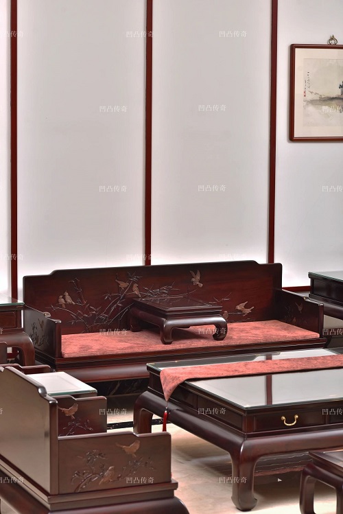 紅木家具不僅是實用器,更是可傳世的藝術品?!断彩屡R門沙發(fā)》選料考究,做工精湛,具有很高的收藏價值。