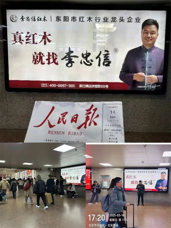 李忠信紅木展開全國性品牌宣傳行動,在東陽市紅木產業(yè)核心區(qū)、北京西站交通樞紐及西安高端住宅區(qū)精準布局線下廣告。