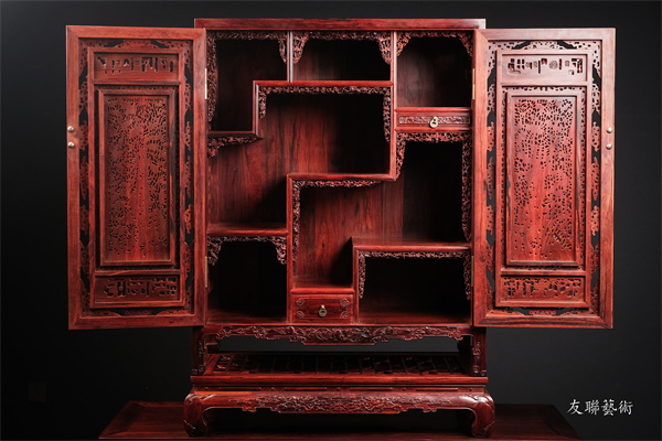 《紫檀精雕花鳥帶托泥方角柜》不僅是家具,更是文化載體。其以紫檀為骨、雕工為魂,將宮廷美學(xué)、非遺技藝與現(xiàn)代功能完美融合,既滿足精英階層對品質(zhì)生活的追求,亦為收藏家提供可增值的藝術(shù)資產(chǎn)。友聯(lián)·家通過“為傳承創(chuàng)造價值”的品牌理念,讓傳統(tǒng)家具超越實用范疇,成為鏈接歷史與未來的文化符號。