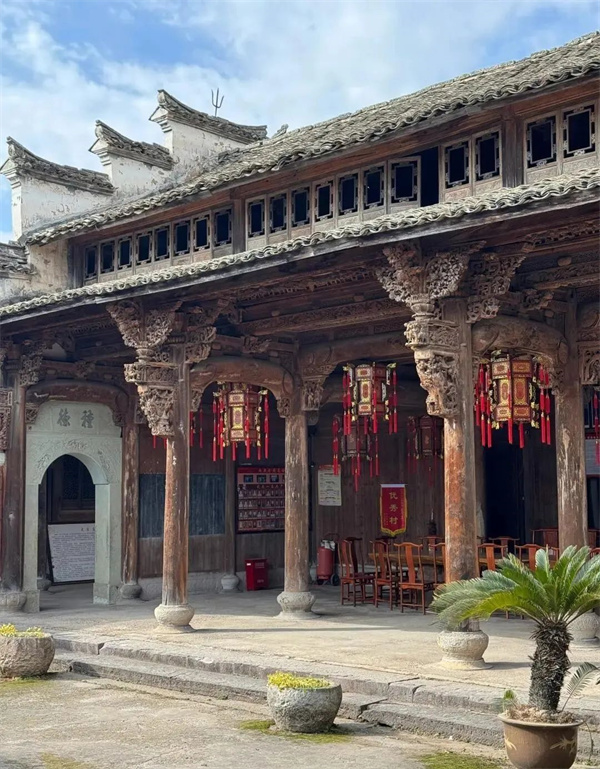 花廳為磚木結(jié)構(gòu),面積不大,粉墻飛檐近似徽派建筑,門窗與牛腿采用了透雕、深浮雕等技法,生動呈現(xiàn)了傳統(tǒng)戲曲故事。