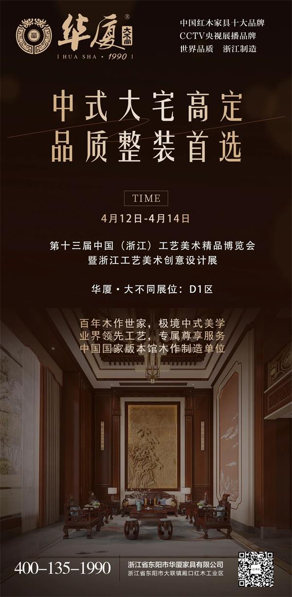 春暖花開之際,華廈·大不同紅木將攜東方雅韻,亮相第十三屆中國(浙江)工藝美術精品博覽會暨浙江工藝美術創(chuàng)意設計展!誠邀您于4月12日-14日親臨義烏國際博覽中心D1展區(qū),沉浸式體驗紅木整裝的空間藝術,感受千年木藝與現(xiàn)代生活的完美交融!