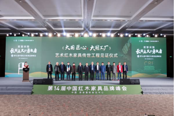 為了把紅木品牌推向新高度,2024年12月18日,在第15屆紅木家具品牌峰會上隆重舉行了《大國匠心&大國品牌》紅木家具傳世工程啟動儀式。全國工商聯(lián)原常務(wù)副主席孫安民,國務(wù)院發(fā)展研究中心原副主任侯云春,國家文物局原副局長張柏,原國家林業(yè)部科技司副司長黎云昆,全國工商聯(lián)民間文物藝術(shù)品商會創(chuàng)會會長宋建文,故宮博物院文保科技部原主任曹靜樓,中國家具協(xié)會副理事長、紅古軒品牌創(chuàng)始人吳赤宇,中國傳統(tǒng)工藝大師、東陽卓木王董事長杜承三,中國傳統(tǒng)工藝大師、山東巧奪天工董事長張愛冬,中國傳統(tǒng)工藝大師、明堂家居總經(jīng)理張向榮,浙江省工藝美術(shù)大師、東陽李忠信紅木董事長李忠信,東莞國壽紅木董事長陳淦凡,東陽古森紅木董事長吳飛陽,全聯(lián)藝術(shù)紅木家具專業(yè)委員會執(zhí)行會長、《大國匠心&大國品牌》欄目策劃人、品牌紅木CEO林偉華共同見證了這一時刻。