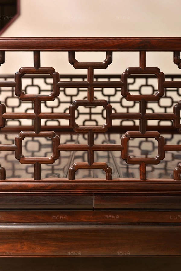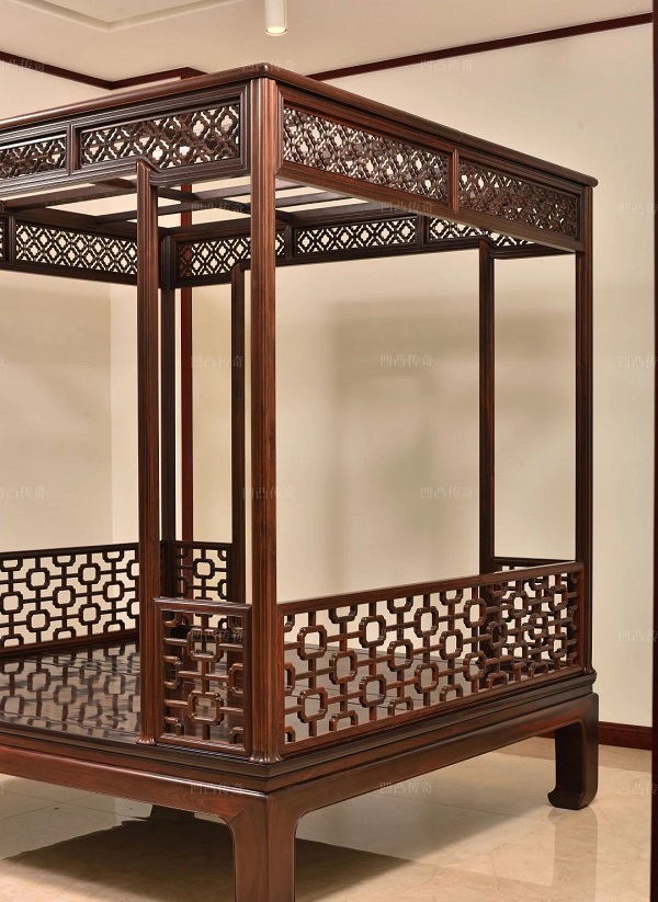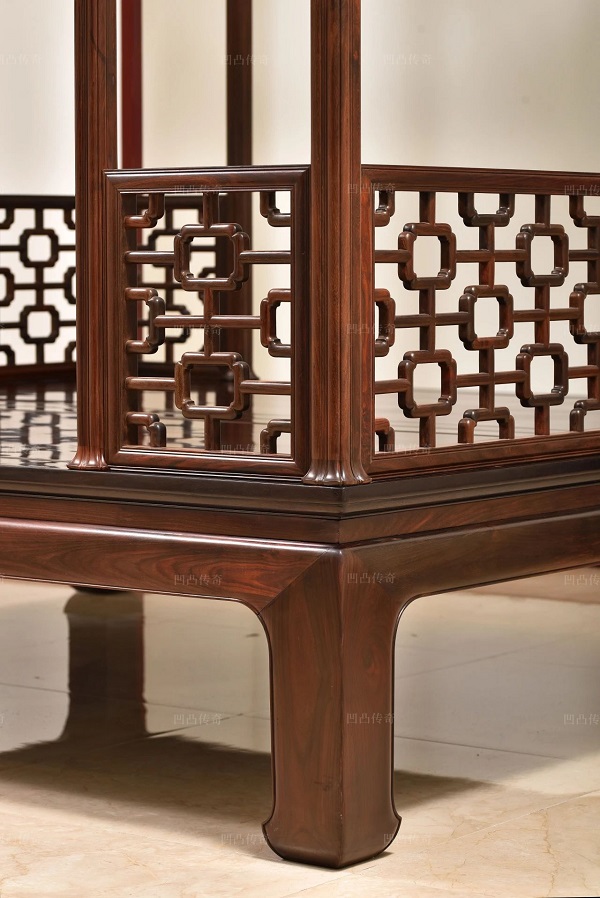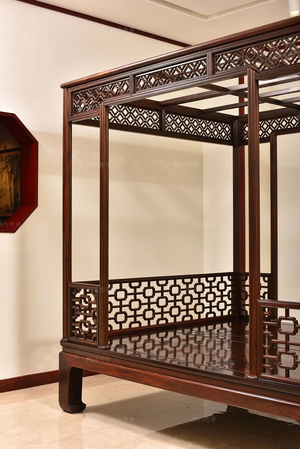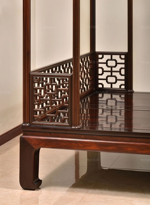 凹凸傳奇架子床,精選上乘大紅酸枝(交趾黃檀)打造,沿襲傳統(tǒng)工藝,既是對(duì)明式美學(xué)的致敬,亦是對(duì)當(dāng)代紅木家具藝術(shù)的升華,四面皆有工,每個(gè)角度都可以觀賞。