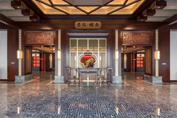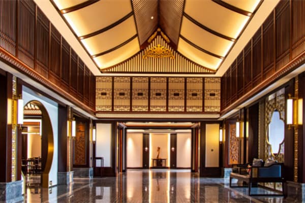 藝術(shù)館內(nèi)部的“忠信·禮遇廳”和“仁和廳”更是別具一格。忠信·禮遇廳以品牌的核心價(jià)值觀命名,代表著忠誠(chéng)與信任。禮遇不僅體現(xiàn)在言語和行為上,更體現(xiàn)在態(tài)度、情感和關(guān)系上。仁和廳則傳達(dá)出仁愛和諧的理念,人字造型的屋頂,不僅在外觀上給人以穩(wěn)重、大氣之感,更象征著家庭的庇護(hù)與溫暖,寓意著人與人之間的相互關(guān)愛與扶持。