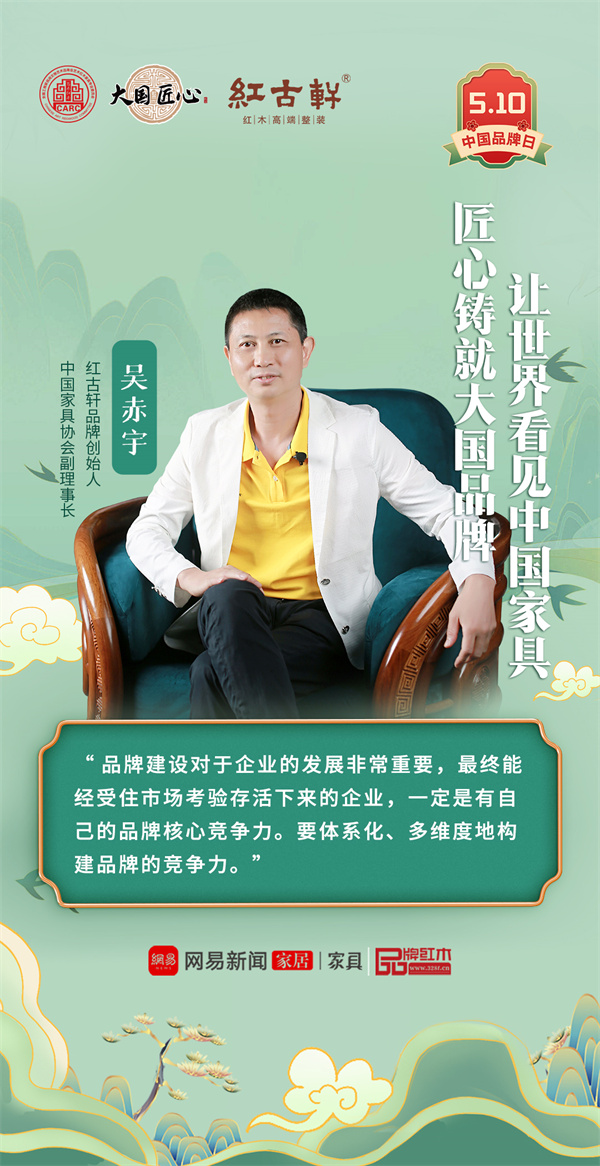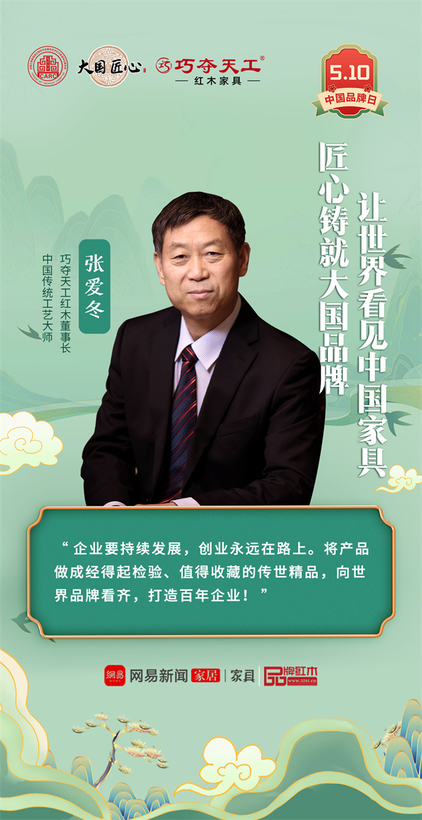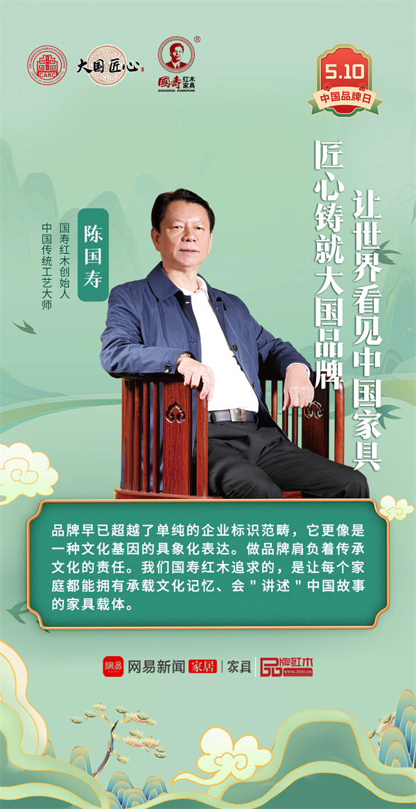 5月10日是我國(guó)第九個(gè)“中國(guó)品牌日”,為深入貫徹落實(shí)國(guó)家品牌發(fā)展戰(zhàn)略,提升紅木家具行業(yè)的品牌影響力和市場(chǎng)競(jìng)爭(zhēng)力,品牌紅木聯(lián)合網(wǎng)易家居家具推出“匠心鑄就大國(guó)品牌,讓世界看見中國(guó)家具!”品牌日專題之匠心語錄。