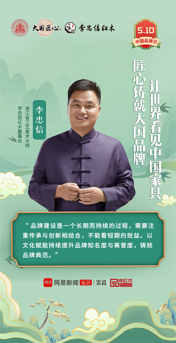 浙江省工藝美術(shù)大師,李忠信紅木董事長(zhǎng)李忠信匠心語錄:“品牌建設(shè)是一個(gè)長(zhǎng)期而持續(xù)的過程,需要注重傳承與創(chuàng)新相結(jié)合,不能看短期的效益。以文化賦能持續(xù)提升品牌知名度與美譽(yù)度,鑄就品牌典范?!?/span>