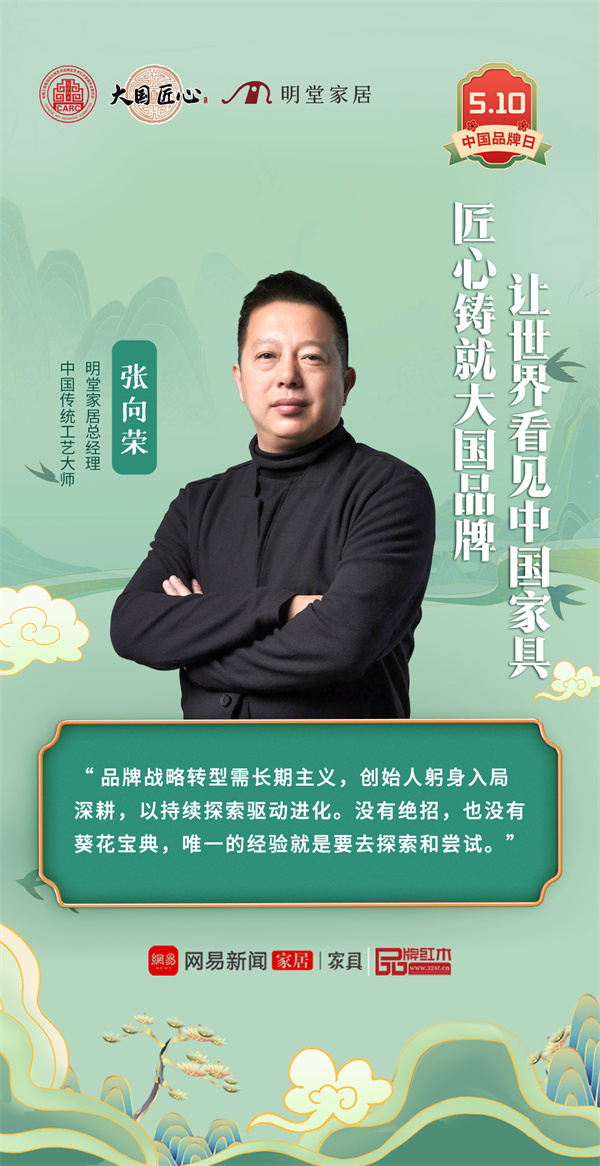 中國(guó)傳統(tǒng)工藝大師、明堂家居總經(jīng)理張向榮匠心語錄:“品牌戰(zhàn)略轉(zhuǎn)型需長(zhǎng)期主義,創(chuàng)始人躬身入局深耕,以持續(xù)探索驅(qū)動(dòng)進(jìn)化。沒有絕招,也沒有葵花寶典,唯一的經(jīng)驗(yàn)就是要去探索和嘗試。”