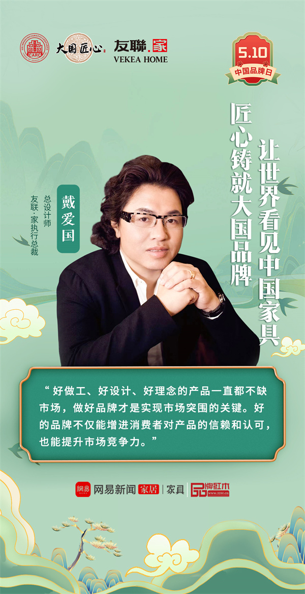 友聯(lián)·家執(zhí)行總裁、總設(shè)計(jì)師戴愛國(guó)匠心語錄:“好做工、好設(shè)計(jì)、好理念的產(chǎn)品一直都不缺市場(chǎng),做好品牌才是實(shí)現(xiàn)市場(chǎng)突圍的關(guān)鍵。好的品牌不僅能增進(jìn)消費(fèi)者對(duì)產(chǎn)品的信賴和認(rèn)可,也能提升市場(chǎng)競(jìng)爭(zhēng)力?!?/span>